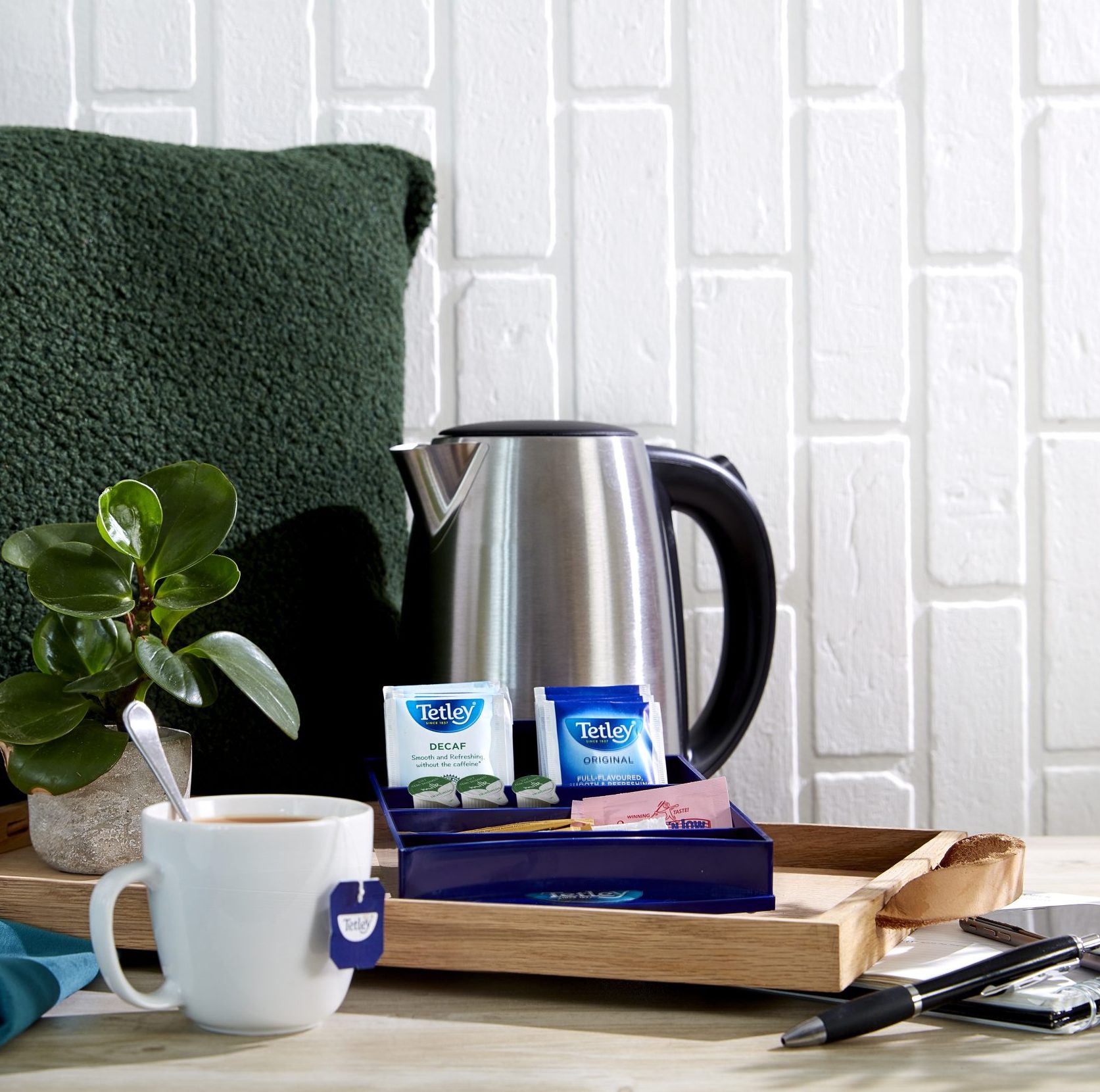 Enhance the in-room tea and coffee experience for your guests with the Tetley Hotel Tidy. This compact and professional accessory provides a stylish and organised solution for presenting a range of hot beverage essentials. Designed to hold individual tea bags, sugar sachets, stirrers, and milk portions, it ensures everything is neatly contained and easily accessible. The tidy’s sleek design and robust construction make it an ideal addition to any hotel room, B&B, or guesthouse, reflecting a high standard of care and attention to detail.